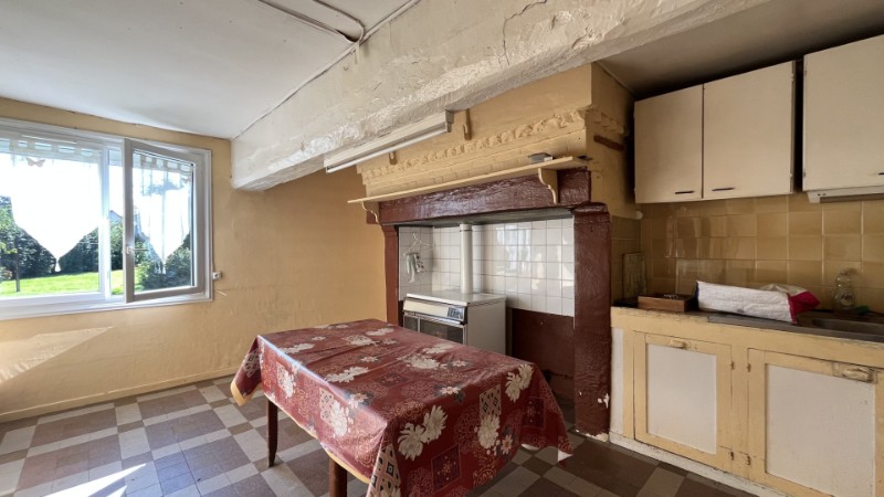 Superficie habitable de 70m² environ comprenant: une entrée, une cuisine avec poêle à fioul, salle à manger, chambre, wc, salle de douche, chambre, cellier.